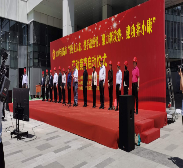 2020年5月28日,青島市“當(dāng)好主人翁、攜手戰(zhàn)疫情、聚力新攻勢(shì)、建功奔小康”勞動(dòng)競(jìng)賽啟動(dòng)儀式在李滄區(qū)國(guó)際院士港產(chǎn)業(yè)核心區(qū)項(xiàng)目順利舉行,啟動(dòng)儀式由青島市勞動(dòng)競(jìng)賽委員會(huì)主辦,李滄區(qū)總工會(huì)協(xié)辦。市人大常委會(huì)副主任、市總工會(huì)主席劉圣珍、市總工會(huì)黨組書記彭建國(guó)、市發(fā)改委副主任徐守國(guó)等領(lǐng)導(dǎo)出席。青島市15家單位,30個(gè)重點(diǎn)建設(shè)項(xiàng)目,共計(jì)300余人參會(huì),集團(tuán)公司組隊(duì)參加。
