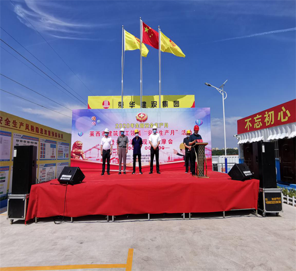 2020年6月22日,萊西市建筑施工領(lǐng)域“安全生產(chǎn)月”活動(dòng)暨揚(yáng)塵治理現(xiàn)場(chǎng)觀摩會(huì)在七公司徐明健項(xiàng)目部施工的萊西市人才公寓項(xiàng)目成功召開。萊西市住房和城鄉(xiāng)建設(shè)局于濤副局長(zhǎng)、建筑企業(yè)服務(wù)中心王建學(xué)主任、青島昌陽(yáng)投資開發(fā)有限公司劉浩部長(zhǎng)等領(lǐng)導(dǎo)參會(huì),集團(tuán)公司副總裁周兵一出席活動(dòng)并發(fā)表講話,市建筑企業(yè)服務(wù)中心監(jiān)督執(zhí)法人員及全市施工、建設(shè)、監(jiān)理單位分管負(fù)責(zé)人、項(xiàng)目經(jīng)理、項(xiàng)目總監(jiān)、安全員等共計(jì)230余人參加觀摩。