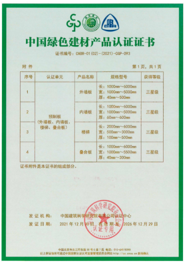 2021年12月30日,榮華(青島)建設(shè)科技有限公司順利通過山東省首批裝配式混凝土結(jié)構(gòu)預(yù)制構(gòu)件(預(yù)制墻板、預(yù)制樓板、預(yù)制樓梯)“綠色建材三星級(jí)認(rèn)證”。