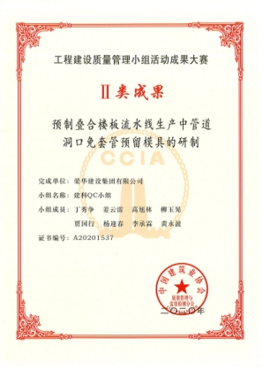 9月28日,中國(guó)建筑業(yè)協(xié)會(huì)公布2020年度工程建設(shè)優(yōu)秀質(zhì)量管理小組活動(dòng)成果大賽名單,集團(tuán)公司獲Ⅱ類(lèi)成果1項(xiàng):建科QC小組-預(yù)制疊合樓板流水線生產(chǎn)中管道洞口免套管預(yù)留模具的研制,獲Ⅲ類(lèi)成果1項(xiàng):中英創(chuàng)新產(chǎn)業(yè)園項(xiàng)目QC小組-提高被動(dòng)式超低能耗建筑坡屋面保溫施工質(zhì)量。